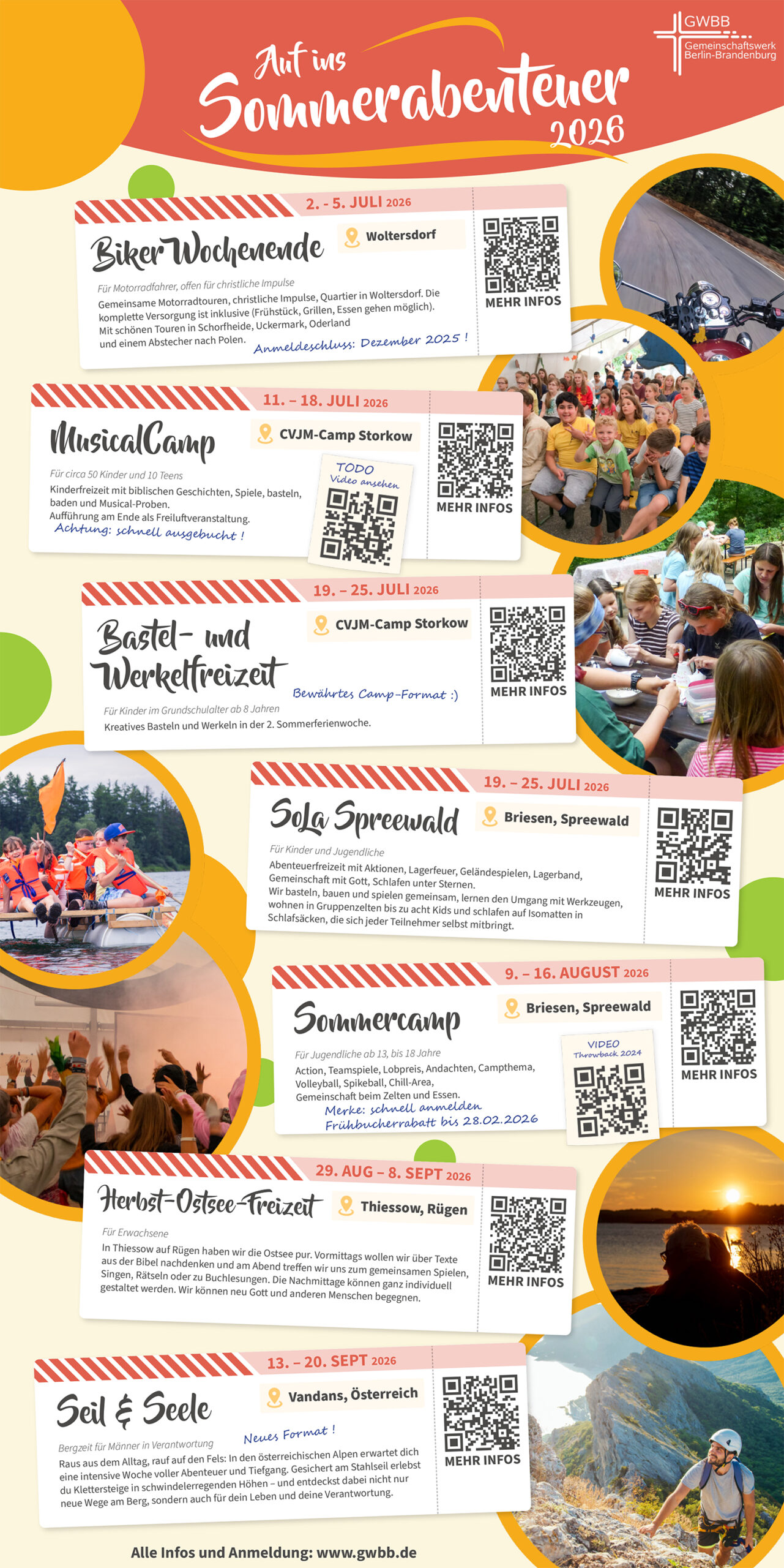 Wir laden herzlich ein, im Sommer auf eine Freizeit mitzukommen. Egal, ob Kind, Teenager oder Erwachsener – für jede und jeden ist etwas dabei.