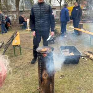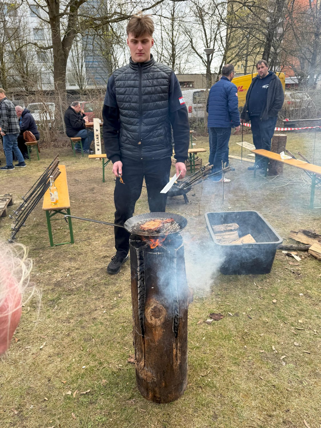 69 Männer strömten nach Eben Ezer und waren bereit, an 17 Aktionen teilzunehmen. Das Fleisch mit Kartoffeln und Gemüse durfte man selber über dem Schwedenfeuer garen. Den rauchigen Duft durfte man gratis mit nach Hause nehmen. Wir hatten uns gegen ein Regenprogramm entschieden und die Regenwolken wurden entgegen der Wetterprognose weiter nördlich vorbeigeschoben.